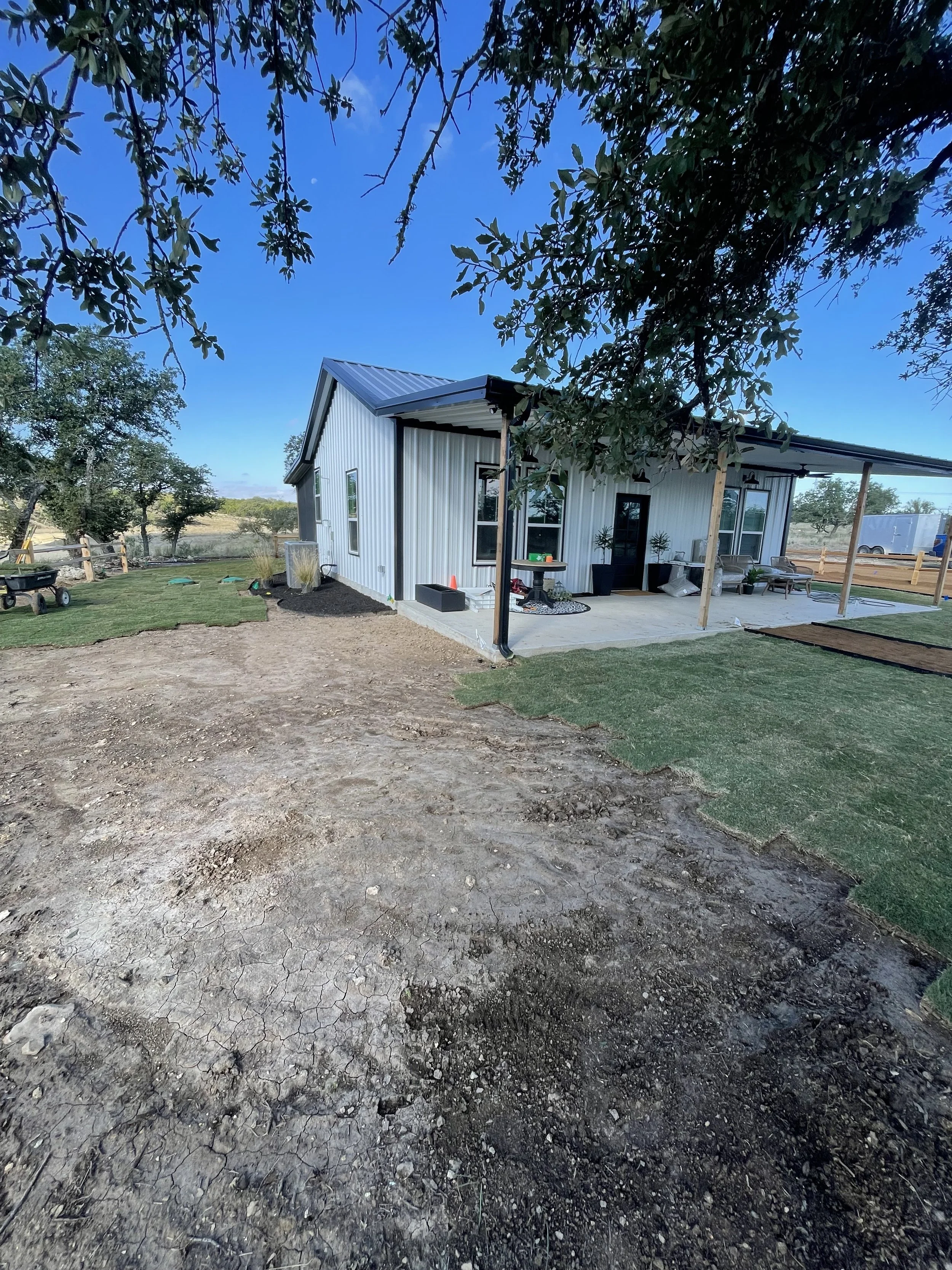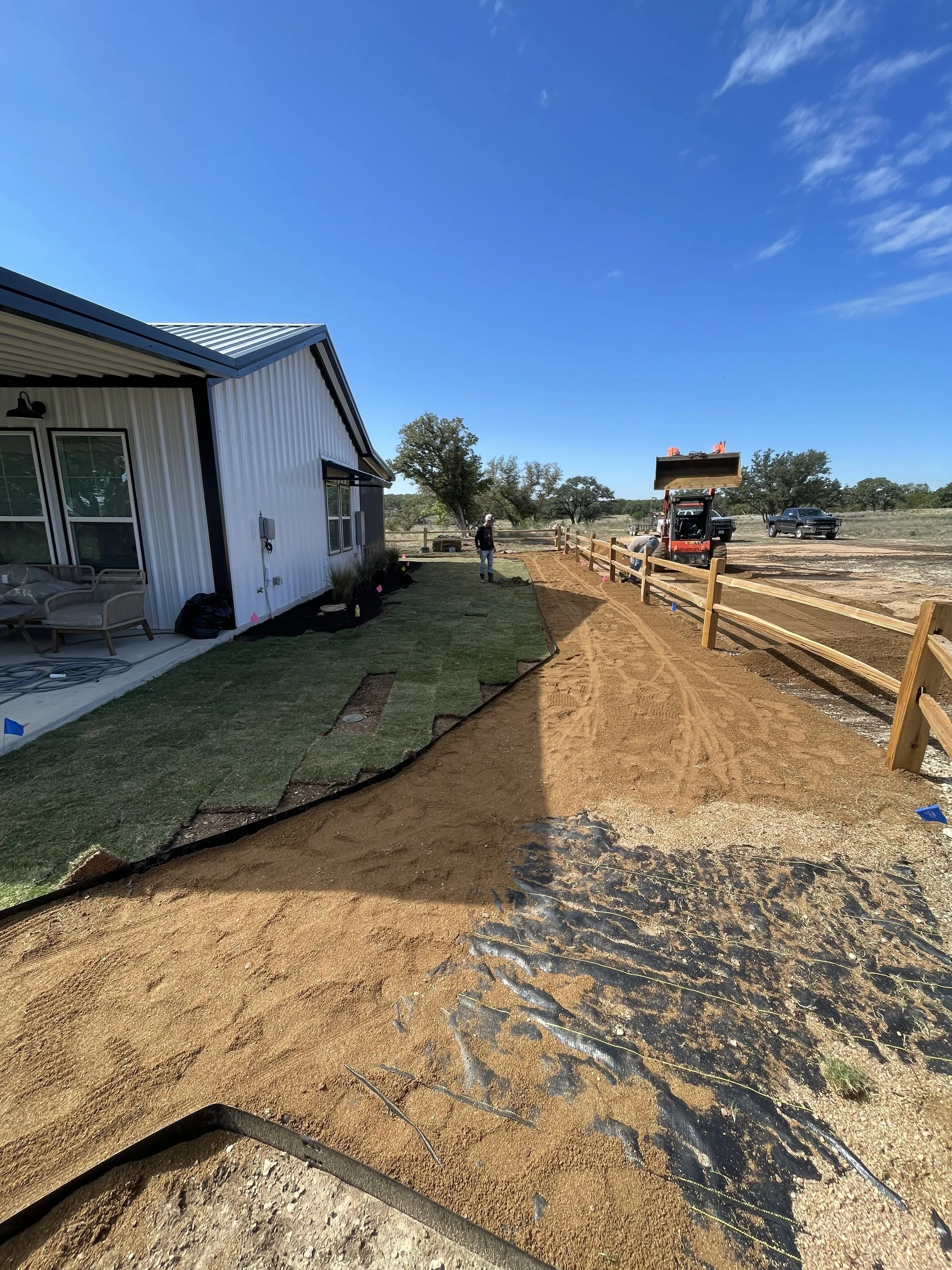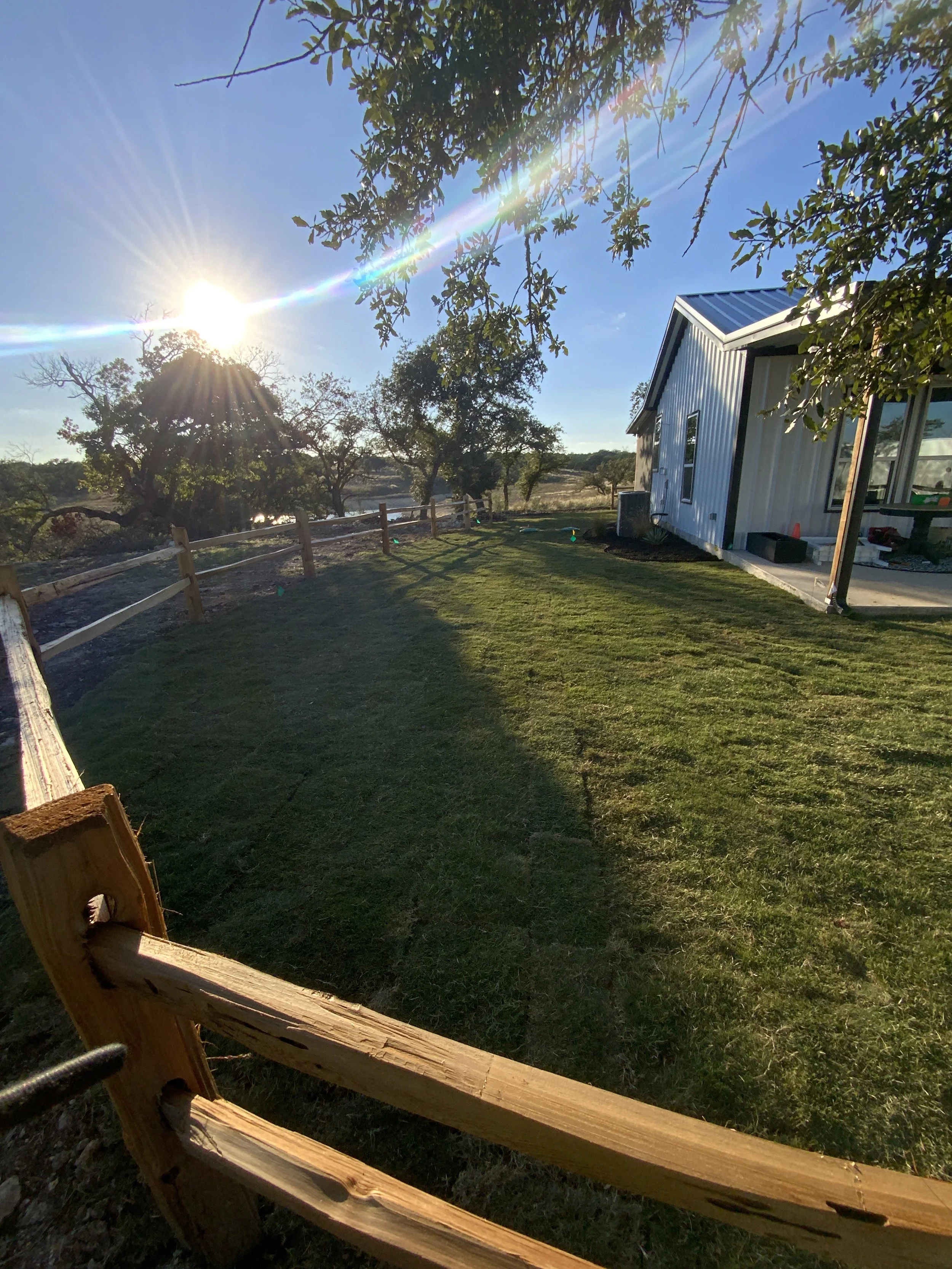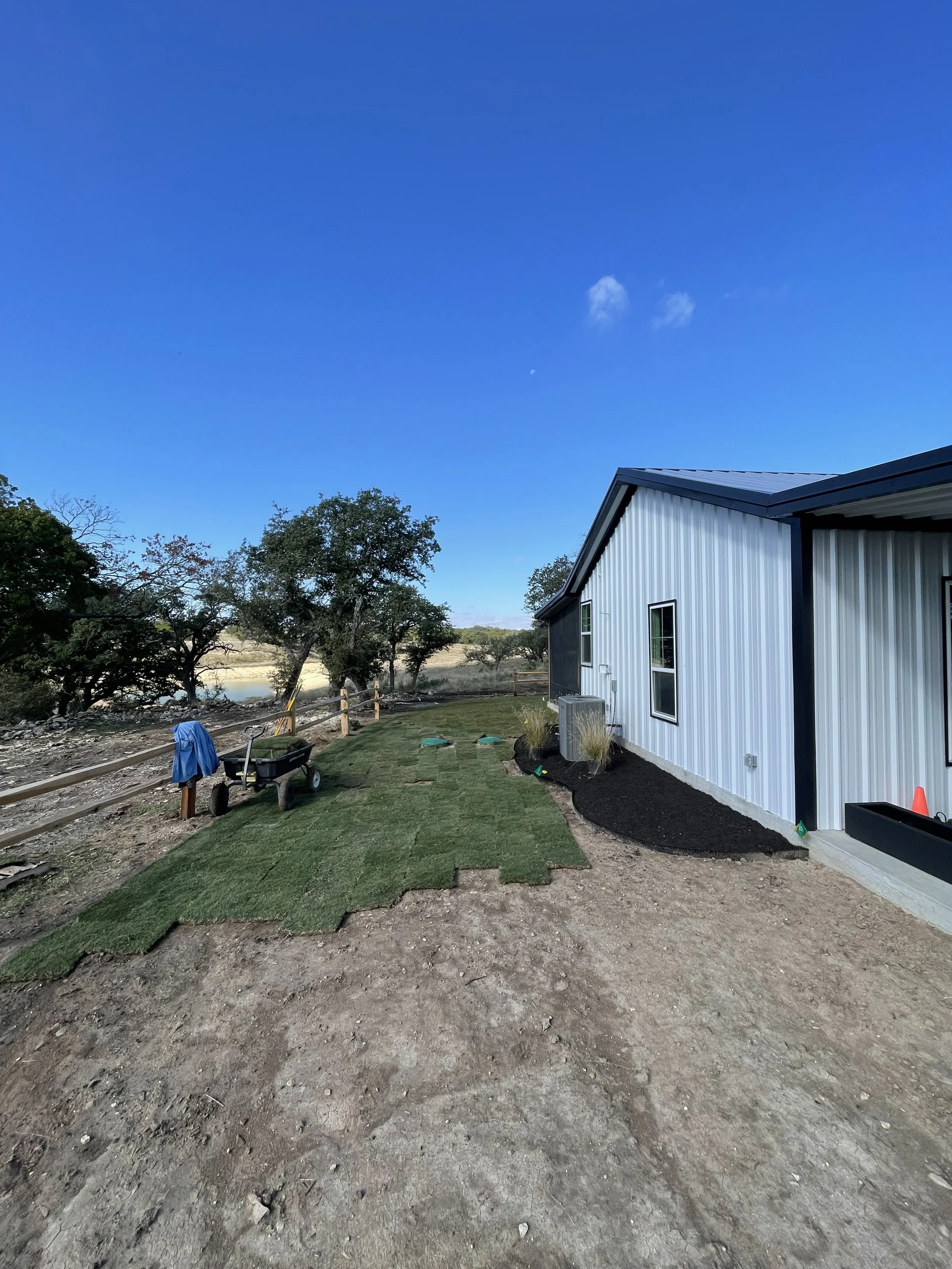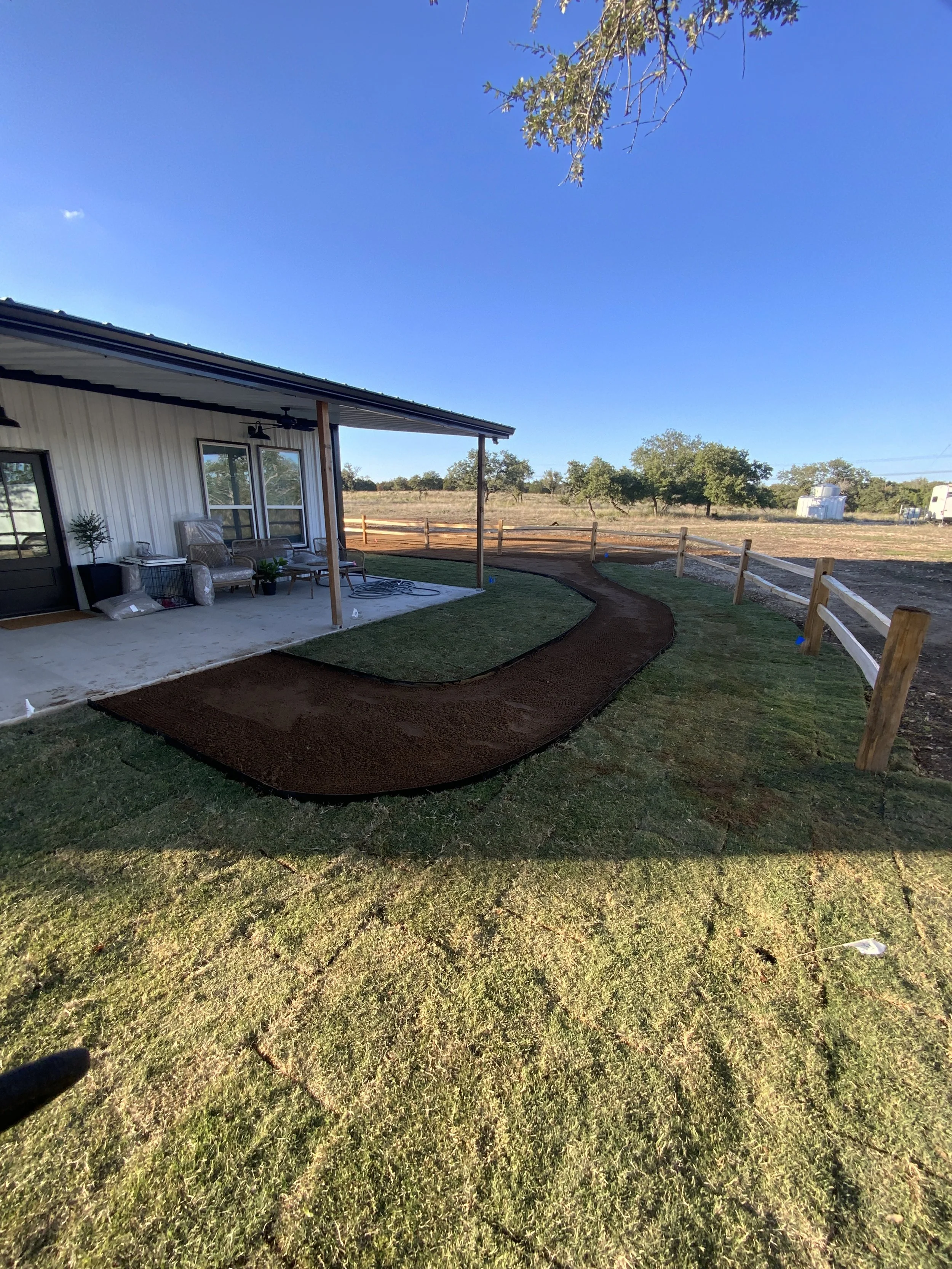 SOD INSTALLATION : Sod Installation consists of establishing a level/graded area of ground for sod to be laid, the spreading of additional topsoil if needed to fill low areas, clearing of debris from area that sod will be laid, the actual laying of the sod which is done in a staggered pattern (similar to how bricks are laid), application of Grass Starter Fertilizer to aid in new grass establishment, and lastly watering in of the sod. The 2 most common types of sod in Central Texas are St. Augustine & Bermuda grass.